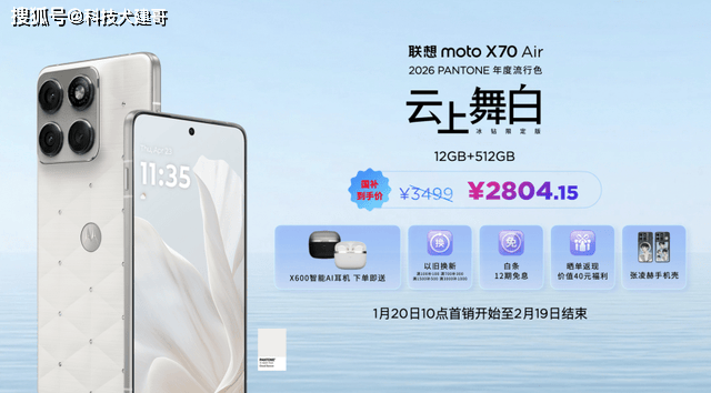 联想moto X70 Air云上舞白冰钻限定版价格为3499元,国补到手价仅约2804元。即日起下单用户除可享受首销四重礼遇外,还将获赠张凌赫同款专属手机壳,打造从内到外的完整高定体验。